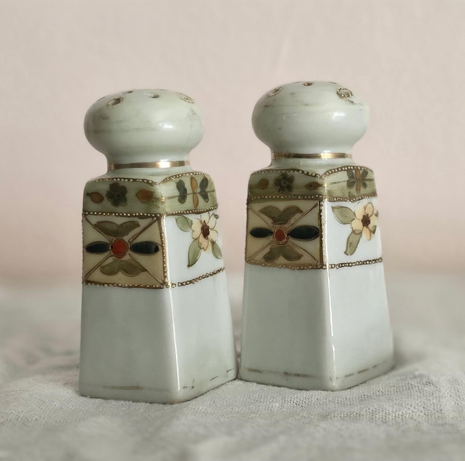 Antique Noitake Moriage Salt and Pepper Shakers- Hand painted - Circa 1920-1930- Collectors Item