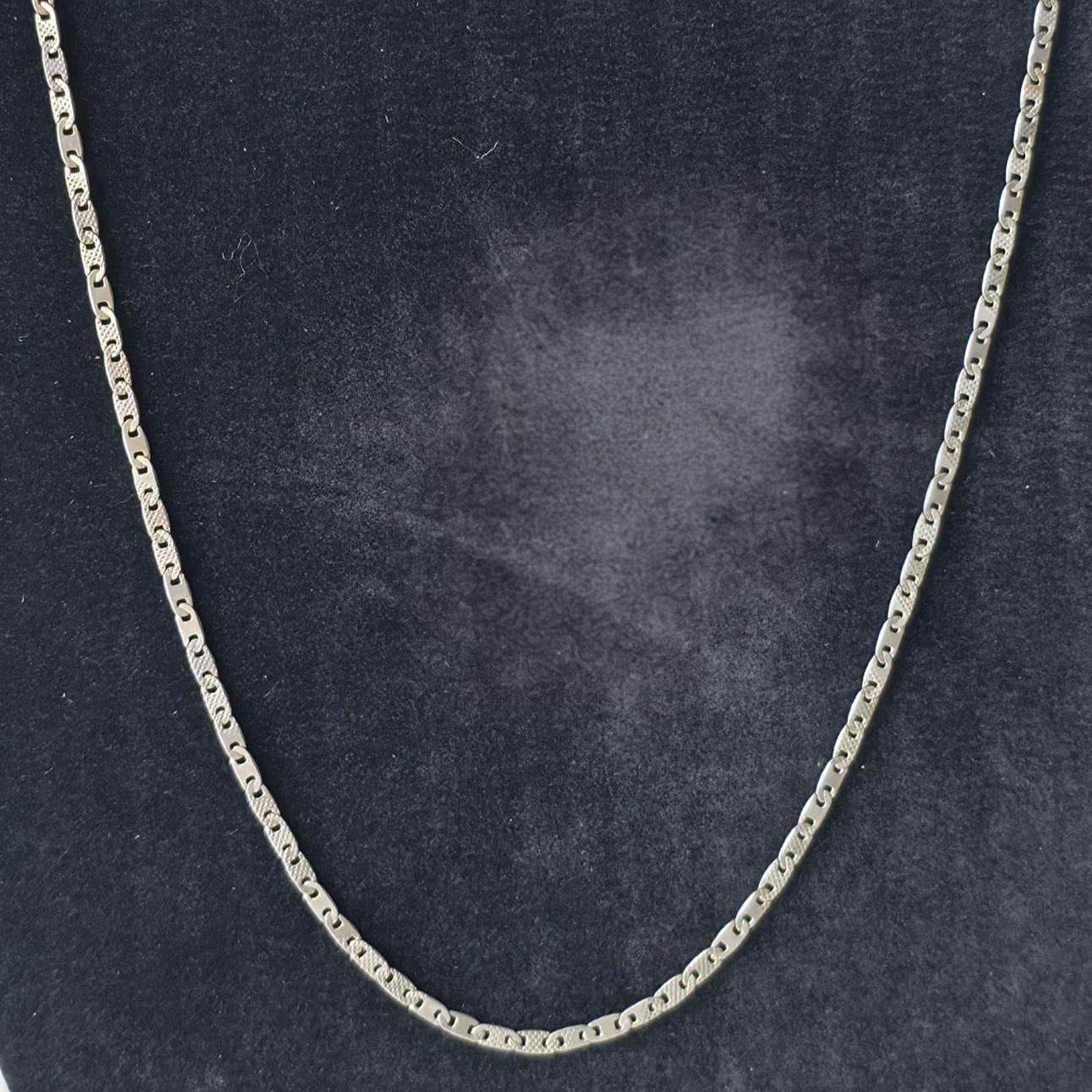 Beautiful vintage solid 14K yellow gold mariner link chain. Uniform flat links with a subtle diamond-cut texture that catches light beautifully.