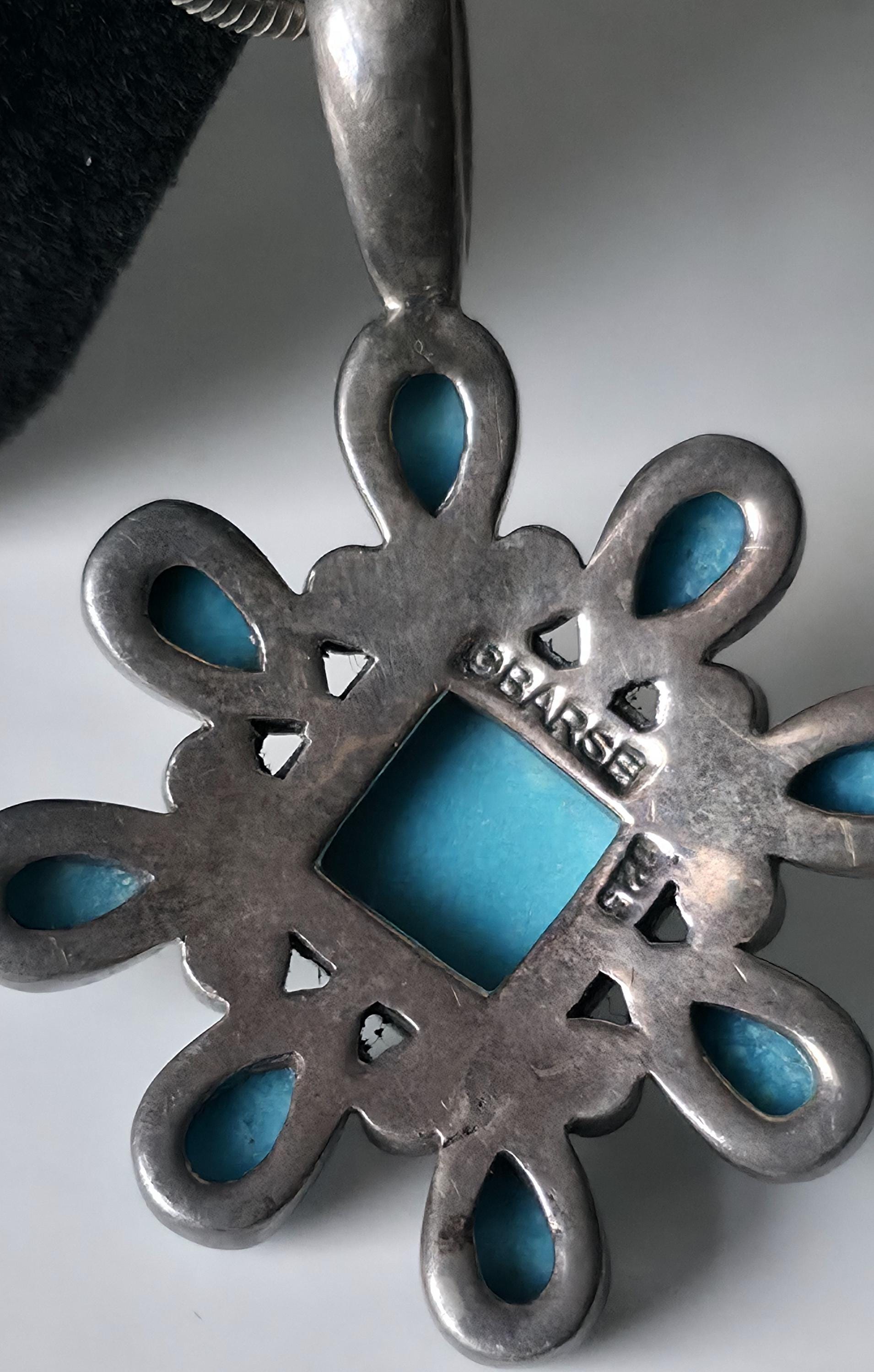 Presenting a stunning, substantial 20" snake chain with a Turquoise and Sterling Silver Cluster Pendant from the Barse line. Discontinued necklace- Weighing a luxurious 19 grams, this piece features genuine natural turquoise with a pure, vibrant robin's egg blue color that is highly prized and visually almost looks to be rare Sleeping Beauty Turquoise.